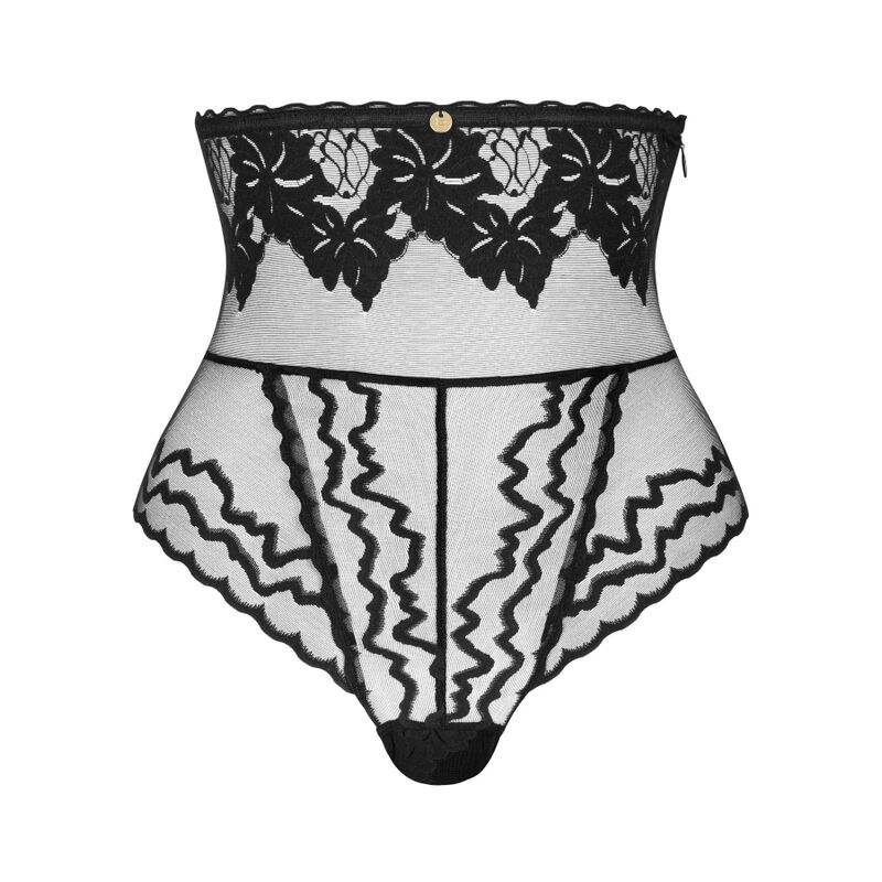 Las bragas Arienna son una propuesta extremadamente femenina y sensual. El diseño de talle alto expone perfectamente las formas femeninas y enfatiza la cintura de forma hermosa. El corte sexy sobre el trasero es un incentivo para los placeres calientes en el dormitorio, y el encaje excepcionalmente elegante agregará estilo y envolverá el cuerpo en atractivo sexual. Las braguitas forman una tentadora pareja con un sujetador de la misma colección.